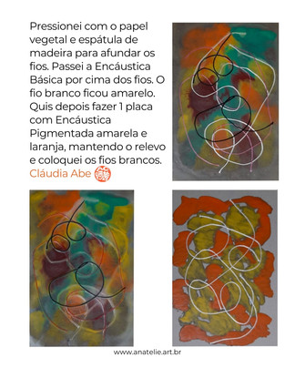 Se você quer aprender a fundo as técnicas de encáustica e seus benefícios, também ofereço um curso de pintura encáustica . Nele, você vai descobrir o poder transformador dessa técnica e aprender a criar suas próprias texturas e camadas, aproveitando cada passo do processo artístico para explorar suas emoções e se reconectar com seu eu interior.